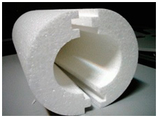 Трубная теплоизоляция из пенопласта “скорлупа” изготавливается из 2-х или 3-х частей длинной 1м с боковыми замковыми соединениями типа «шип-паз», которые очень плотно закрываются, обеспечивая надежное крепление и препятствуют образованию «мостика холода».